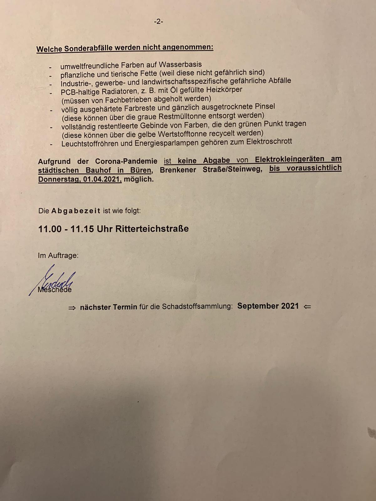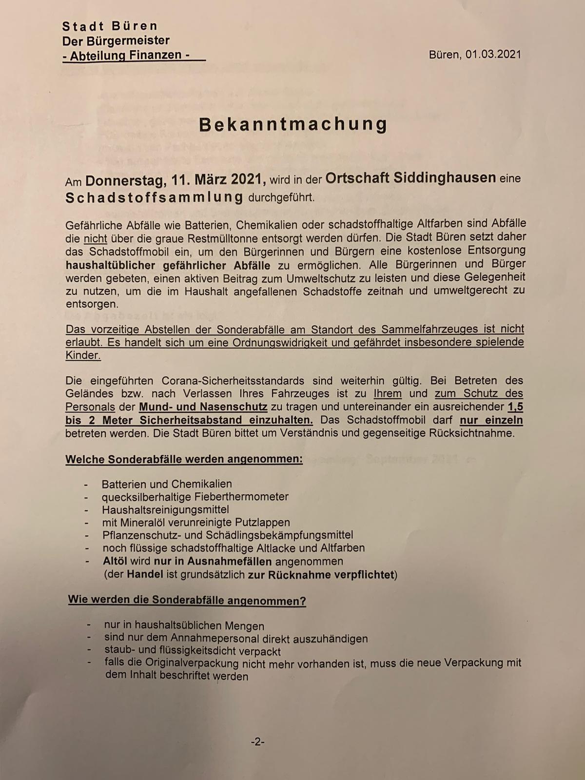 11.3.2021 Schadstoffmobil in Siddinghausen