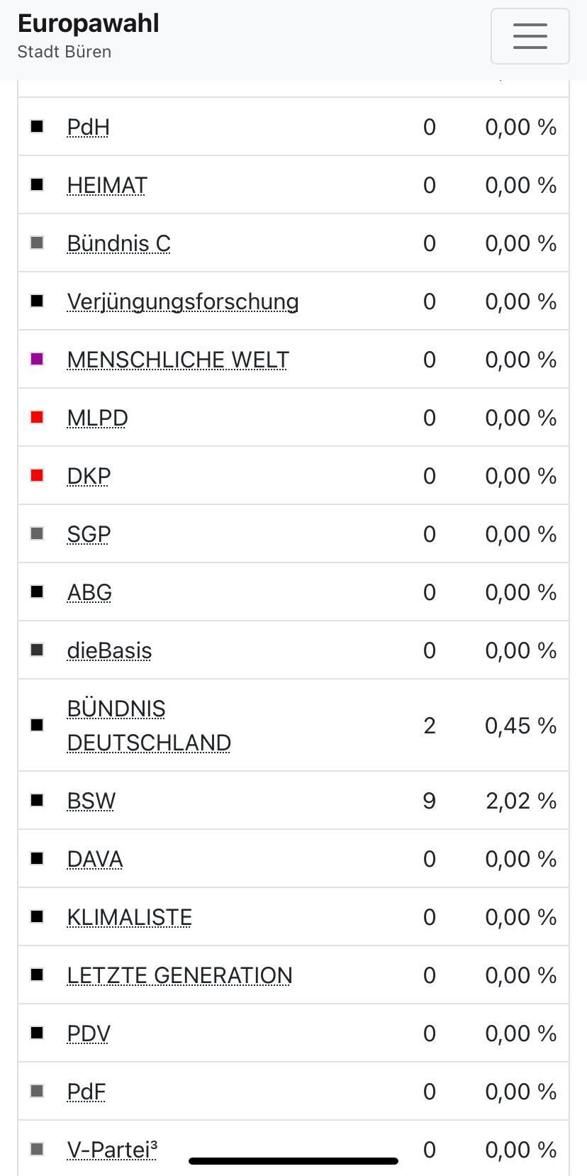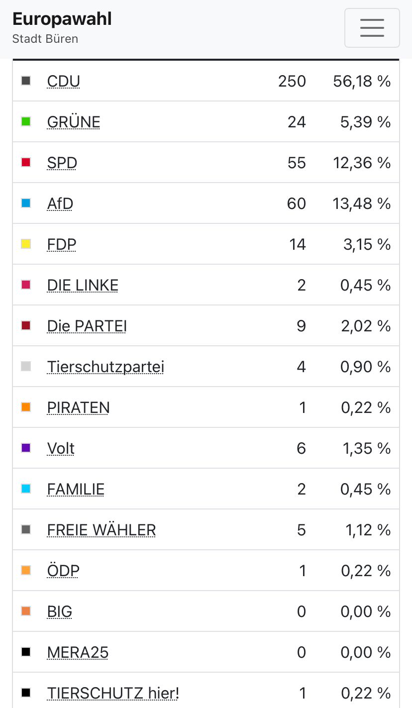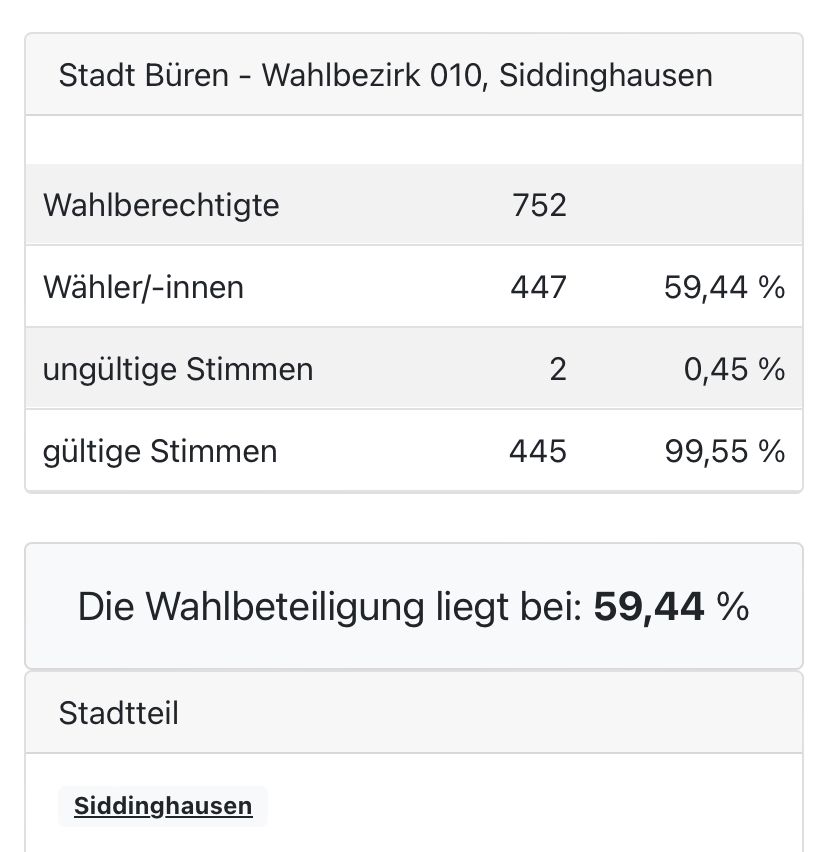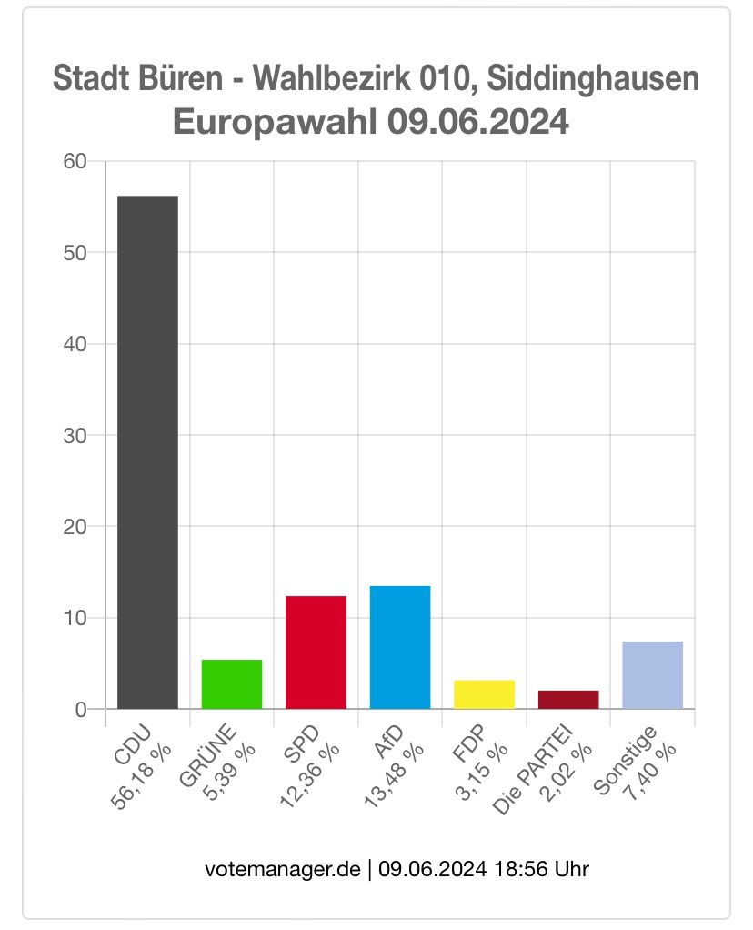 9.6.2024 Europawahl Wahlbezirk 10 Siddinghausen Ergebnisse