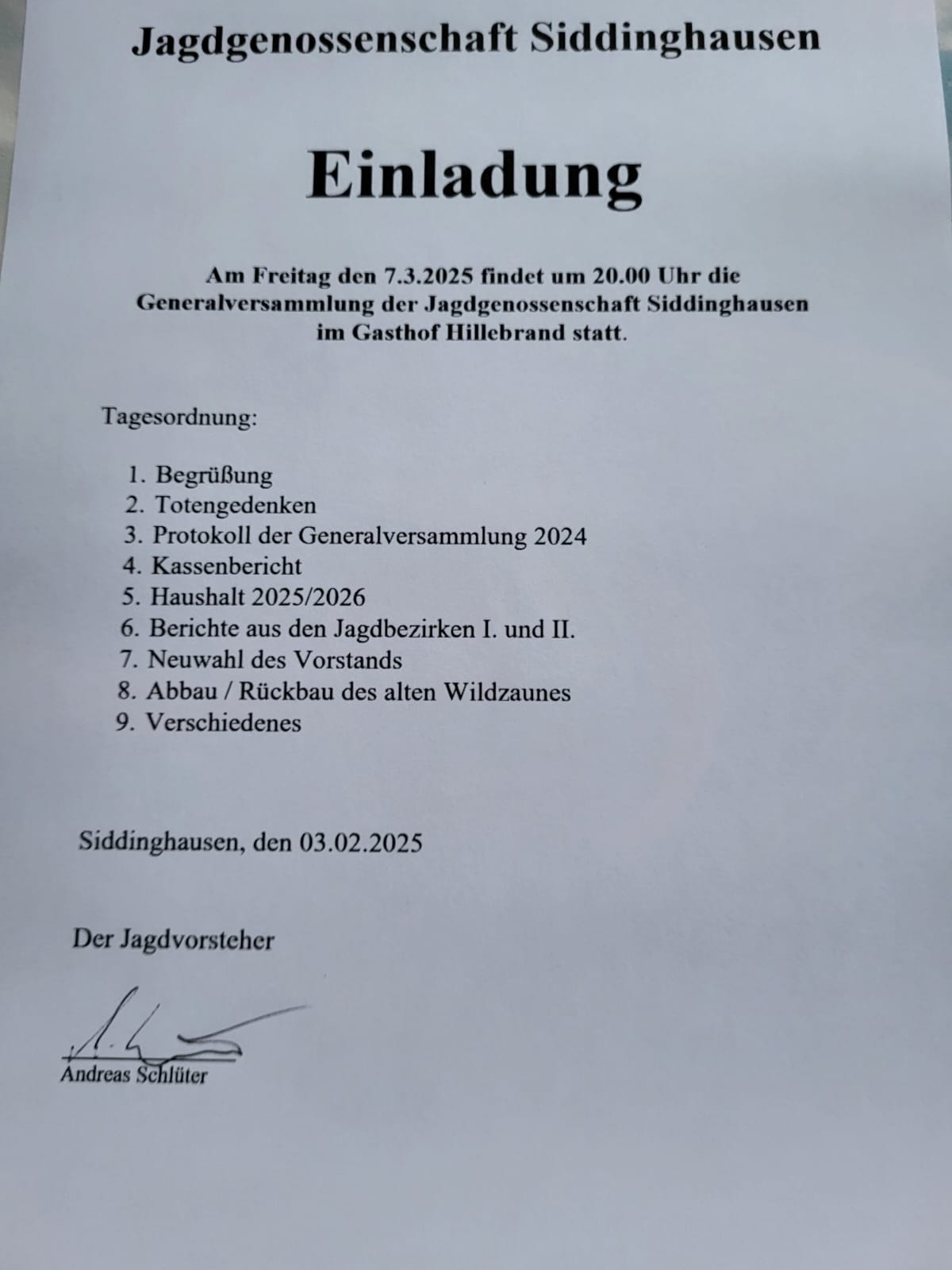 7.3.2025 Jagdgenossenschaft Siddinghausen Generalversammlung