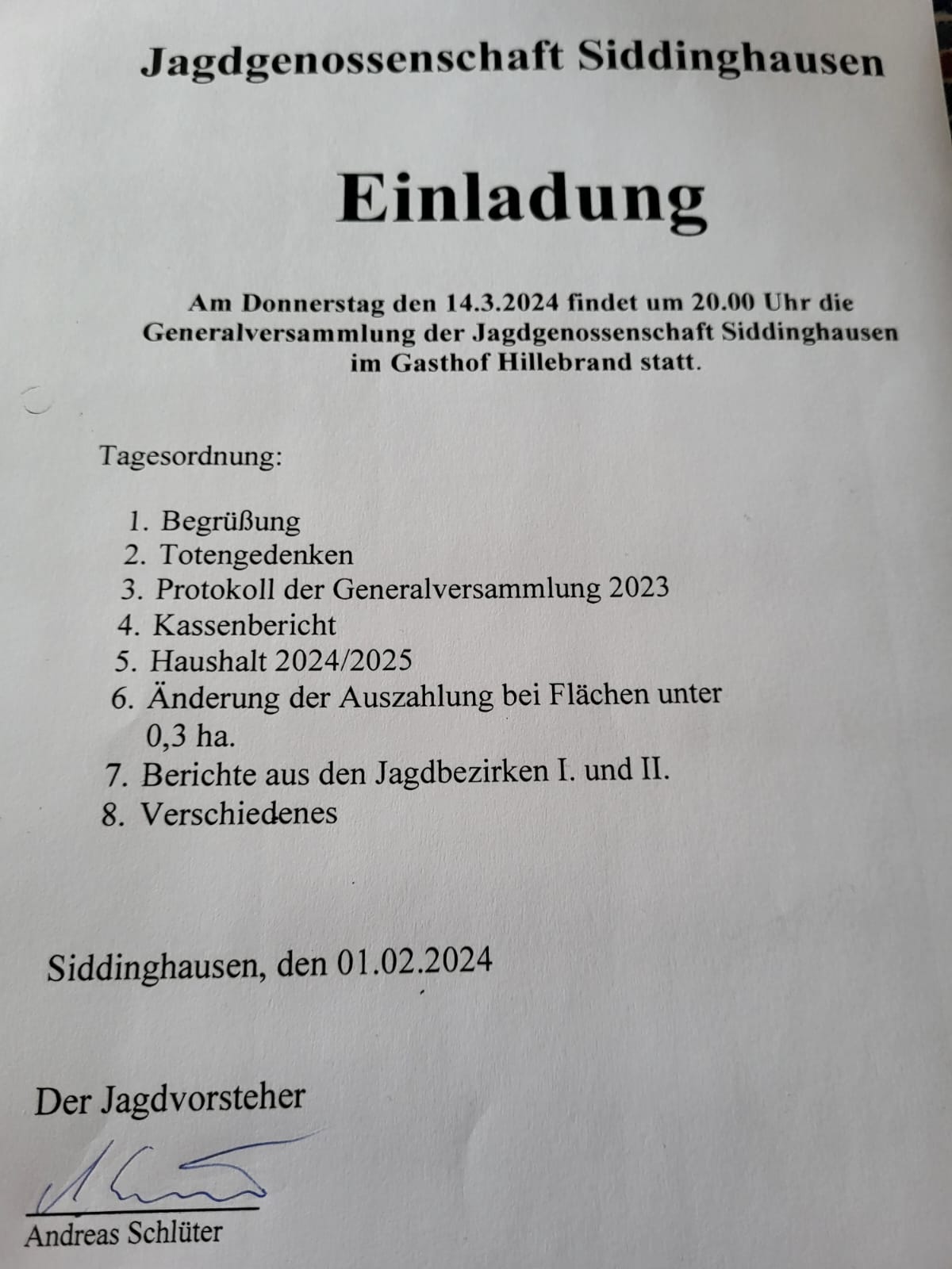 14.3.2024 Jagdgenossenschaft Siddinghausen Generalversammlung