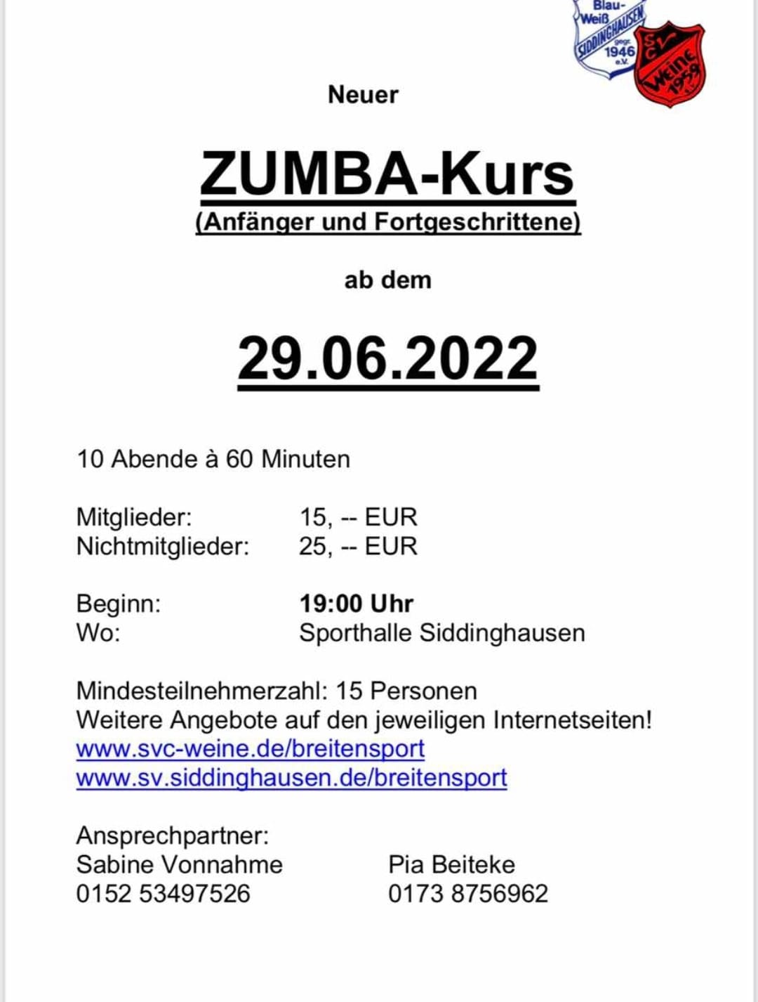 Ab 29.6.2022 neuer Zumbakurs