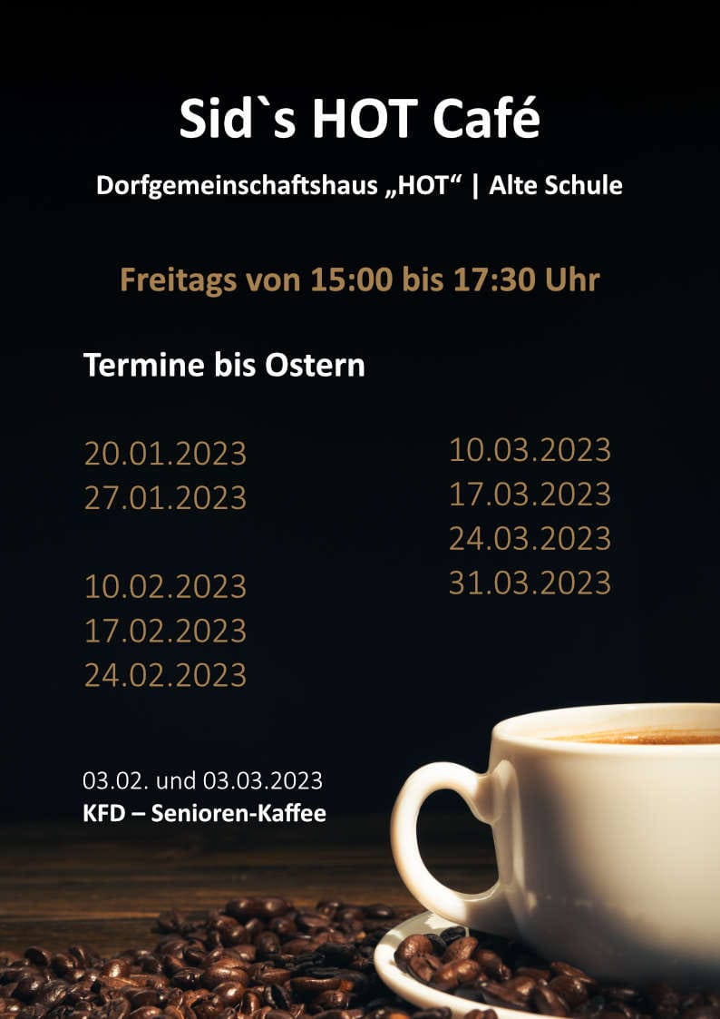 Veröffentlicht am 19.01.202321.01.2023 von mmeisJan.-März 2023 Sid’s HOT Café In Singsen für Singsen. Sid’s HOT Café lädt wieder freitags von 15.00 bis 17.30 Uhr zu Kaffee ☕ Kuchen 🥧 Klönen 🙂 ein.